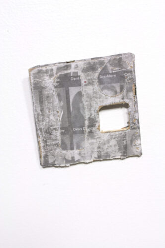 B Perfect as Yo Father S Perfect, wood, glue, real-estate advertisement. Dimensions: 4″ square more or less