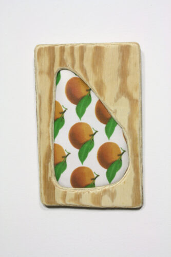 Bubble Bath, oil paint on abandoned stretched painting with Oriented Strand Board (OSB) wooden artist’s frame. Size: welcome floor mat. 20l9.