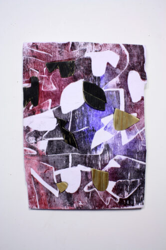 Vehicular Manslaughter, acrylic paint and vinyl sticker on stretched polytab mural fabric. Size: 18” x 24”. 2025.