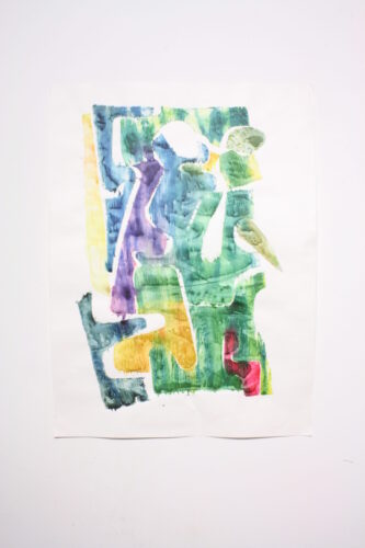 “Trog”, painting in puddle. Size: 18 month old baby. 2023.