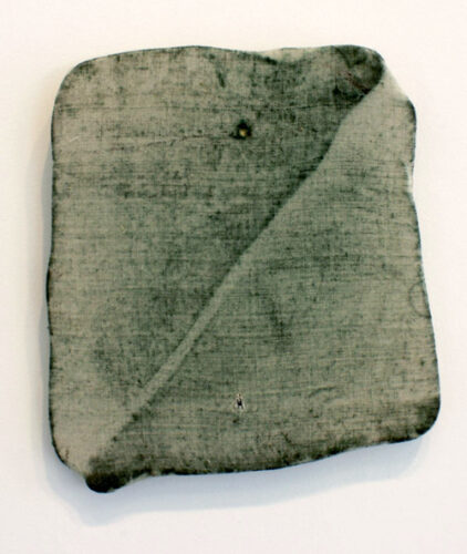 Stop n Shop n Drop, canvas, oil, staples, particle board, filth, 14″ x 15″