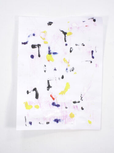 “Trog”, painting in puddle. Size: 18 month old baby. 2023.