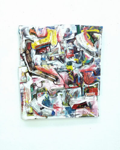 Candy Breath, oil paint on stretched abandoned painting with wooden frame(s). Size: love seat. 202o.