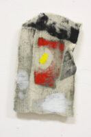 Rewarded Deeds R E Ventually Good, oil, canvas, discarded art, wood fragments, triangle, filth, 2011, 13 94/222″ x 6 33/34″