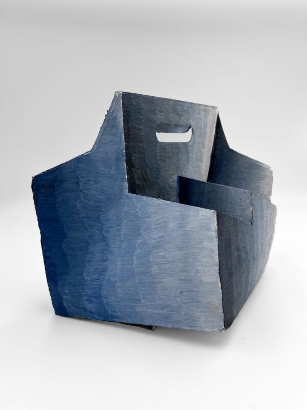 Plants are Humans from the Future, oil paint on drink carrier. 2026.