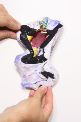 “Find the 2 and You will Be Kissed Tomorrow. 555555555555555555555555555555555555555555555555555555555555555555555555555555555555555555555555555555555555555555555555555555555555555555555555555555555555555555555555555555….” acrylic and spray enamel on mural fabric, Size: Small. 2024.
