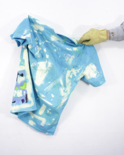 “Trog”, painting in puddle. Size: 18 month old baby. 2023.